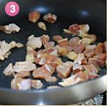 干香菇水泡发后,切成丁,不要挤干香菇里面的水分。