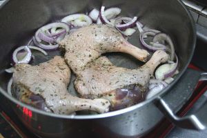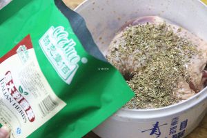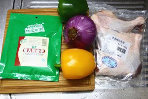 食材准备:意大利香草碎、青圆椒、洋葱、黄圆椒、冰冻鸭腿。