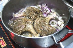 调小火,盖盖焖30-40分钟,中间翻一翻面继续焖。