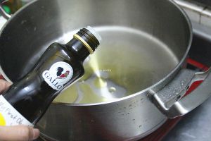 干净无水的锅内加入橄榄油1大勺,中大火,油热放入洋葱,稍稍炒香。