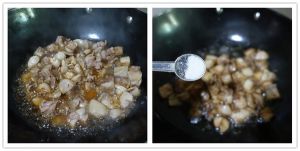 加适量白糖,加酱油上色,翻炒均匀