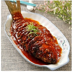 然后把鱼顺锅边划入油锅内,边炸边向鱼身上浇热油,中火炸至鱼皮变酥。