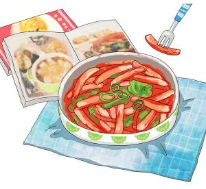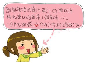 甜甜辣辣的酱汁,配上Q弹的年糕和爽口的蔬菜!超美味~!一点也不油腻,作为小吃和主食都OK。