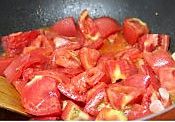 洗净锅后烧热注入油,5成热时加入姜蒜片炒香后倒入西红柿块,调入盐、糖、生抽,翻炒至起沙