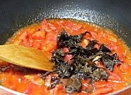 加入木耳丝继续翻炒后,注入2/3满的沸水,大火烧开