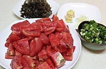 西红柿洗净切块 姜蒜切片 木耳用清水泡发后切丝 香葱切碎