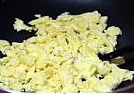将鸡蛋打散成蛋液,倒入料酒混合均匀后热锅凉油划烧成蛋碎盛出备用