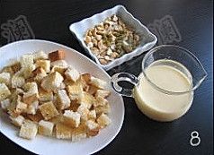 鸡蛋,牛奶,砂糖搅打均匀。过筛2次。