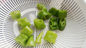 切两个尖椒,这个看个人喜好,我喜欢吃所以加了,不喜欢的可以不加