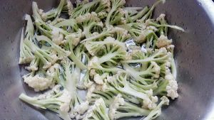 花菜切小朵,泡淡盐水10分钟