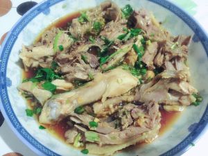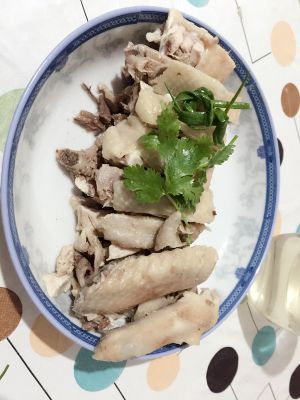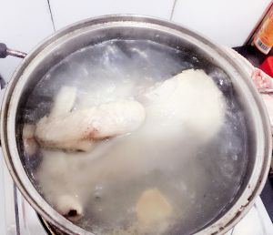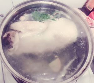 将鸡捞起放入冰水里,直到鸡完全凉了。