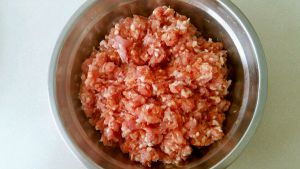 猪肉剁成肉糜,加入适量料酒,盐和味极鲜搅拌均匀