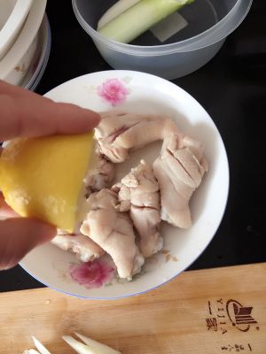 半只柠檬挤出汁散在鸡腿上,腌制20分钟左右