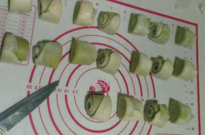 逐个包好擀平卷好,醒十分钟(差不多全部擀完时间刚好)。