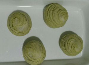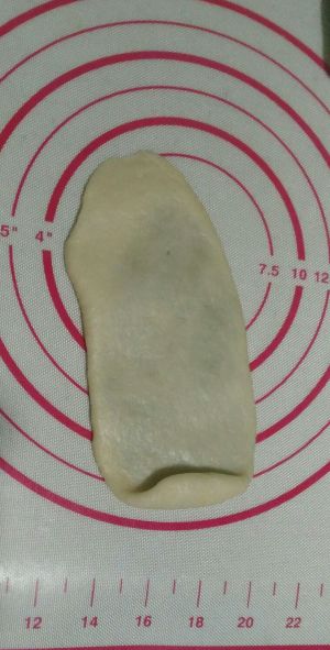 取一个卷,接缝朝上,再擀成牛舌状,再从下往上卷成圆柱形的面团。