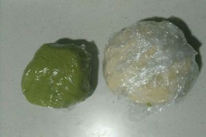 水油皮和油酥分别和成光滑面团。用保鲜膜包好,醒15-20分钟。