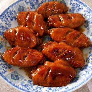 煮开后,将之前腌鸡翅的汤料利用,捞出葱姜,加入小半勺淀粉搅匀倒入锅内,继续盖盖焖煮一两分钟,大火收汁即可出锅。