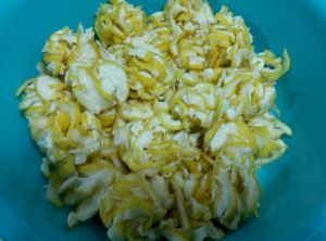 处理完成…泡水…每隔三个小时左右…重复…拧干…换水…拧干…换水…持续24小时…忙,可以多等等,但是别超过48小时…坏掉的…