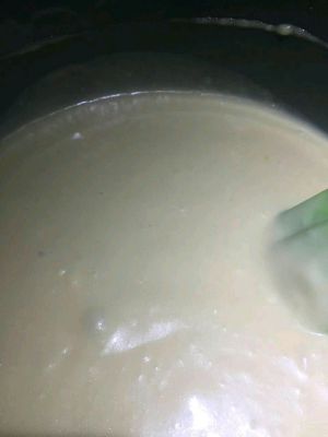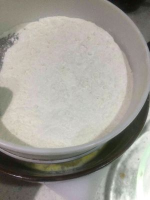 筛入180g低筋面粉,20g玉米淀粉和3g泡打粉,然后搅拌到无颗粒