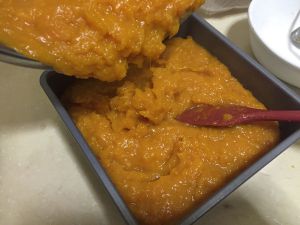 乘热加入适量黄油搅拌均匀后倒入模具内。喜欢甜可以再加些炼乳。