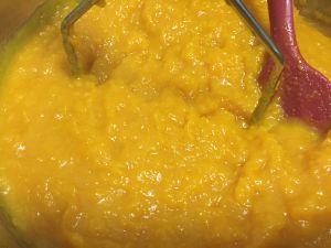 老南瓜去皮切小块,加入适量糖和一点点盐,上锅蒸至酥软。用压泥器压成南瓜泥。