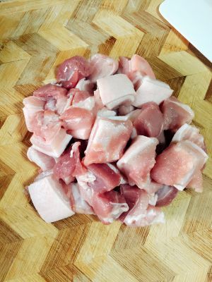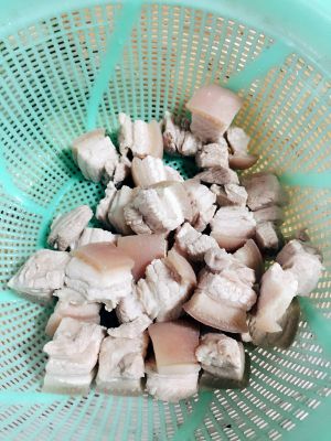 冷水下锅,加料酒,生姜。焯水后洗净沥干。