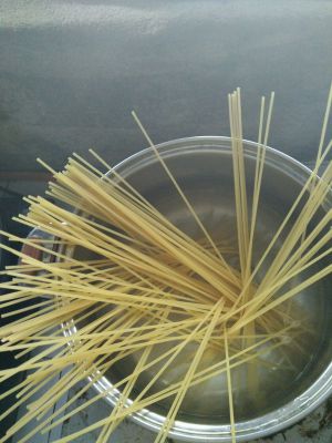 后加入意大利面,一边旋转一边慢慢的等入水的变软,最后煮8~10分钟