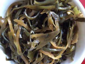 海带洗净,放在水里煮熟,然后捞起,注意水开之后再煮五分钟左右,看自己的喜好,喜欢软的可再煮久点,煮好后沥干水分