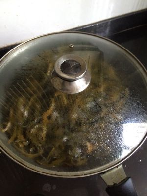 取一口空锅,加入适量的食用油,加热,等油热了撒在拌好的海带上,继续搅拌几下即可。