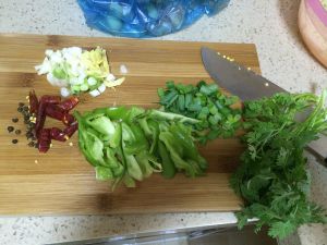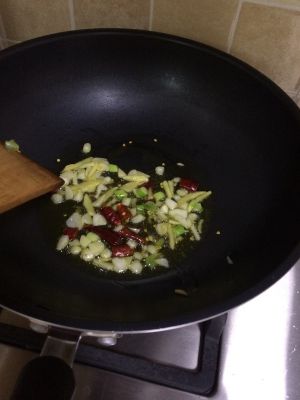 辅材下油锅爆香,先别放葱叶,过几分钟后再放,以免糊掉。