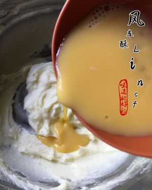 3、分两次加入鸡蛋。用打蛋器搅匀,同样不需要打发。