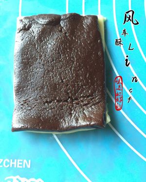 巧克力面团擀成片,切成与原味同样的方形,放到原味方形上
