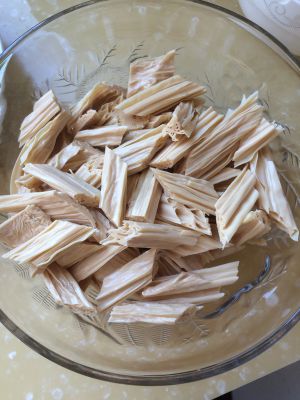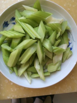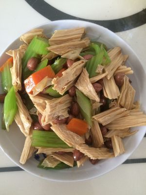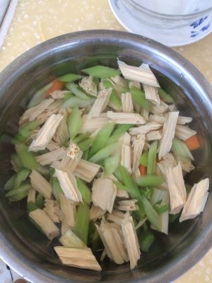 腐竹芹菜胡萝卜汆水后用凉水冲凉后捞出沥干