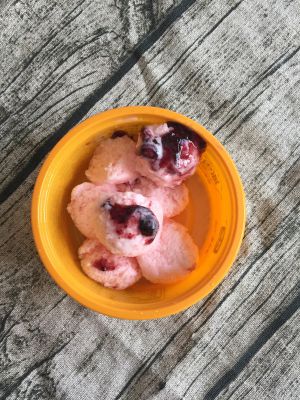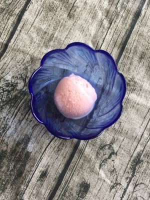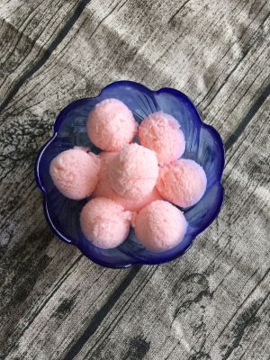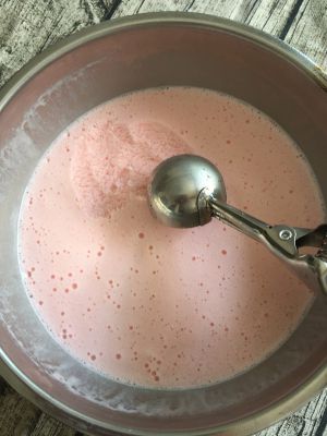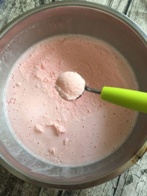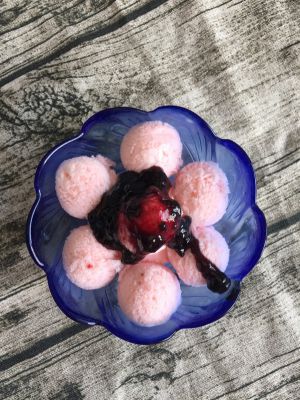 挖好的草莓味酸奶冰淇凌球!很细腻很柔滑!