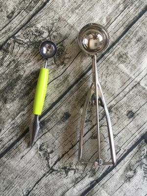 挖满以后,轻轻的一按压手柄就可以了!一个圆圆的冰淇淋球就出来了!