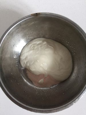 用电动打蛋器搅打2分钟左右!(这个时候要每隔30分钟再取出搅打2分钟,再重复4次就可以了!这样乳化效果更好,口感更加柔滑细腻!)