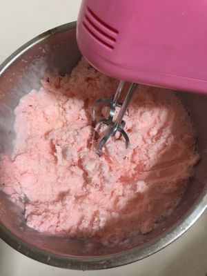 放置冰箱冷冻一个小时后,拿出来,用电动打蛋器搅打2分钟左右。(每隔一个小时再取出来搅打2分钟,重复3次!)