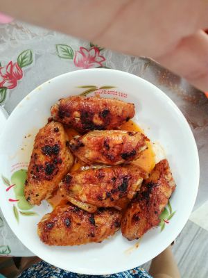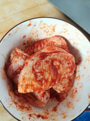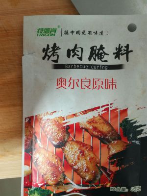 把鸡翅放进碗里,把烤肉腌料倒进碗里拌匀,我喜欢重口点,所以我又放了点盐,之后有条件的放冰箱冷藏更入味,着急吃的话就腌制两个小时就好了。
