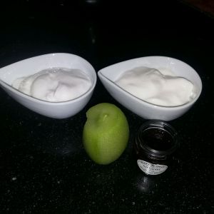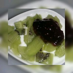 猕猴桃切成丁铺在酸奶上,之后放些果酱就可以了。