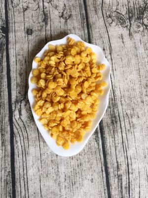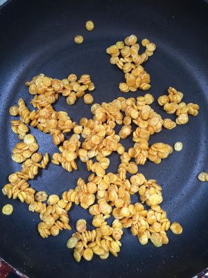 平底锅加热后,放入玉米片小火慢慢的翻炒至香脆即可