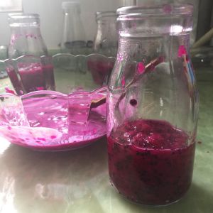 火龙果肉捣碎成泥,有些颗粒感更好哦