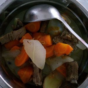 然后放入胡萝卜,因为比较难熟,所以先放胡萝卜。