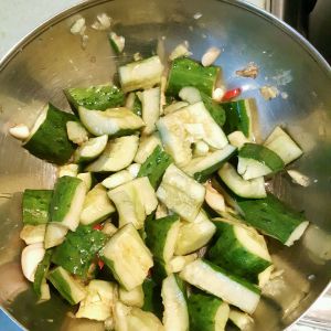 最好是长黄瓜,这种黄瓜不好拍,不容易入味