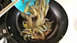 三、 虾身变为粉红色,虾身微曲,即可出锅。