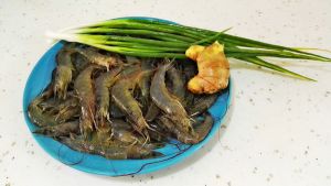 一、 准备好食材,鲜虾洗净,葱姜切末