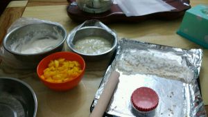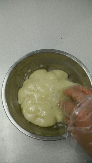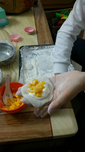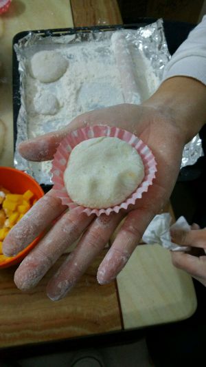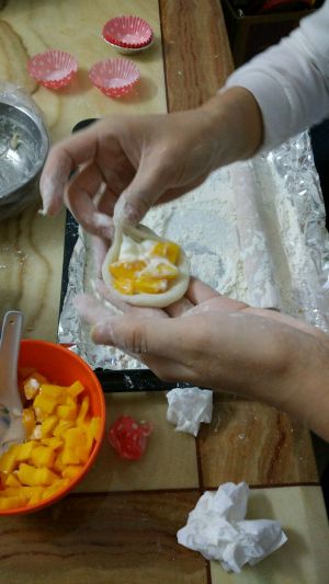 揉好放冰箱 冰一会 开始打奶油 切芒果丁 其实我比较喜欢草莓