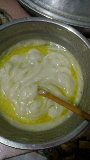 蒸好放入黄油,怕不熟 可以用筷子插一下 不沾筷子就是熟了