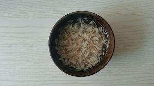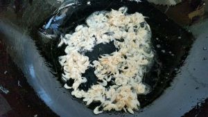 海米控干水分,锅里倒入底油,烧热放入海米炒到金黄色
