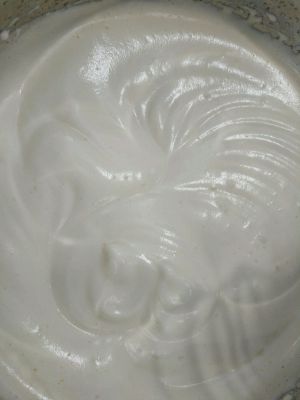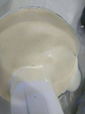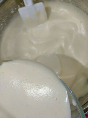 将稀蛋糊倒回到蛋糊中,翻拌均匀。