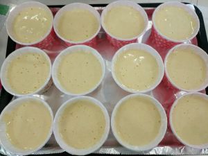 将搅拌均匀的蛋糊倒入纸杯内八分满。